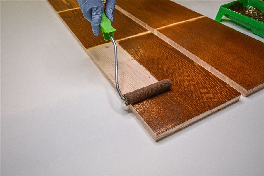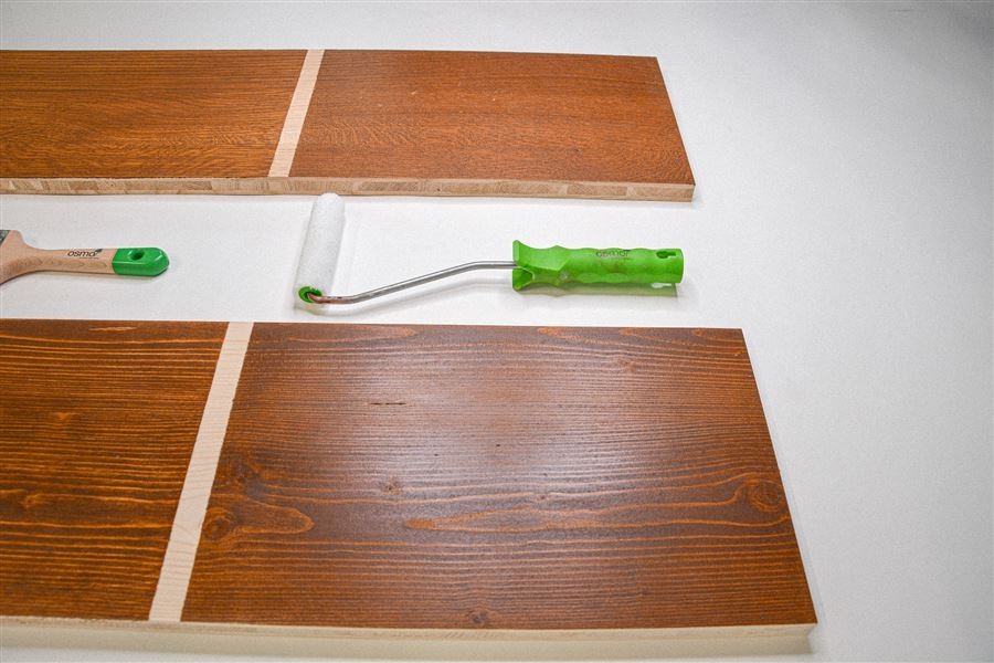 Váleček z mikrovláken (100 mm široký) dokáže roznášet olejovo-voskovaný nátěr na povrch dřeva s přesností a 3 x rychleji než štětec.
